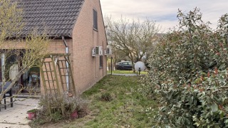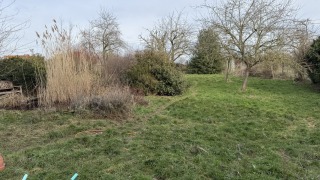 Jardin entièrement cloturé avec plan d'eau, abri de jardin.
