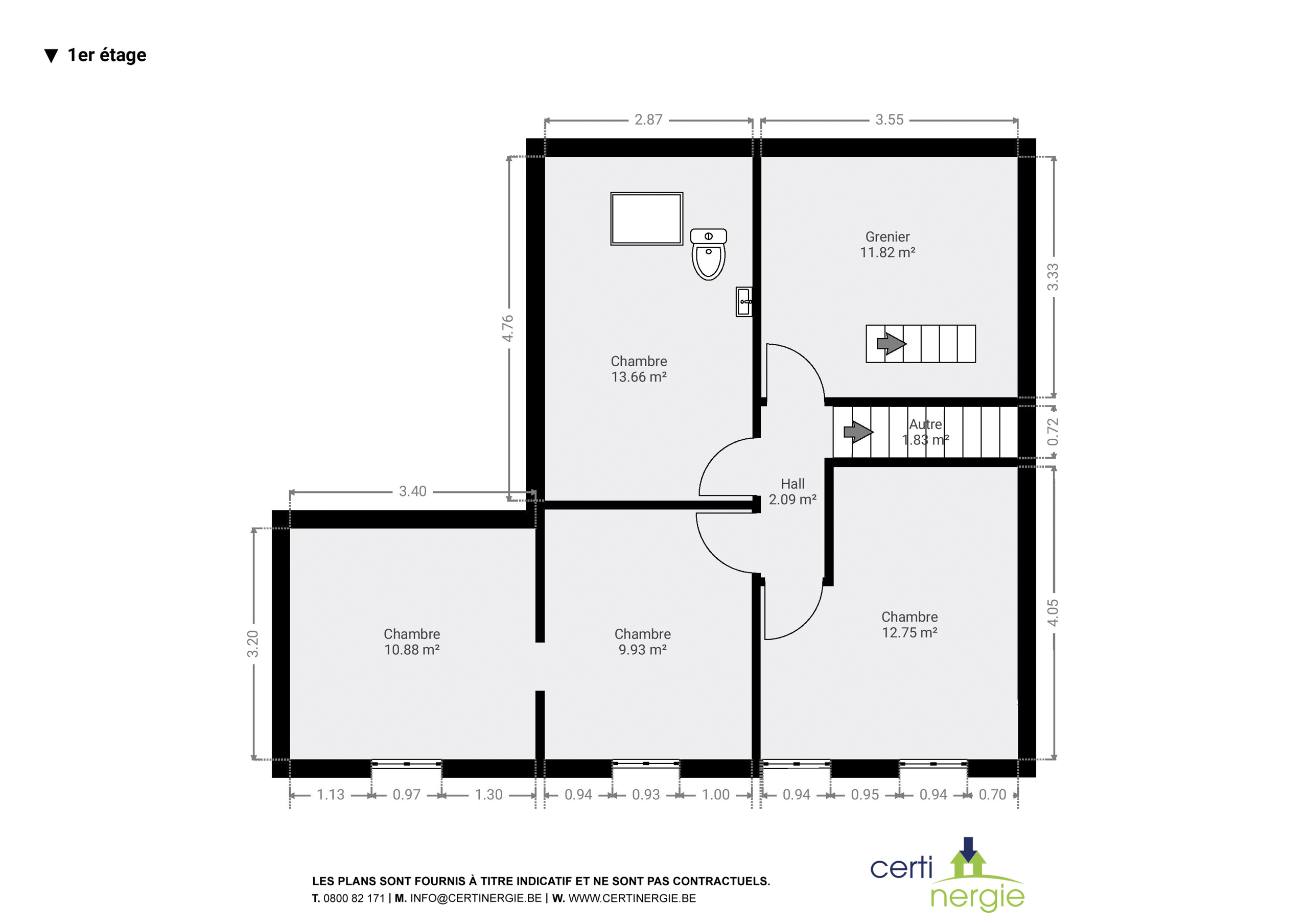 Etage : hall de nuit, quatre chambres, greniers.
