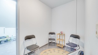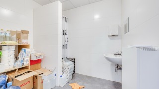 Une cellule commerciale ou bureaux de +/- 70 m², salle d'eau avec toilette, réserve et chaufferie (loué).